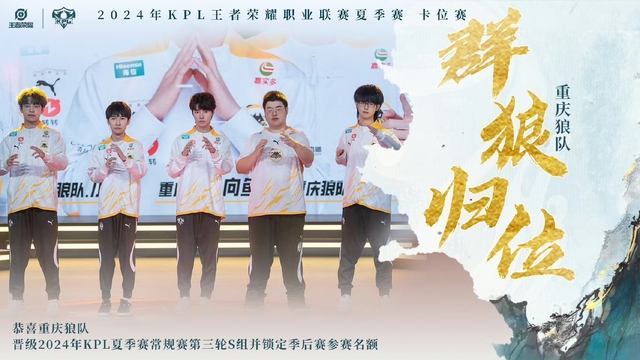重庆狼队在今日常规赛第二轮S/A卡位赛中战胜对手后,确认锁定2024KPL夏季赛常规赛第三轮S组及季后赛名额!