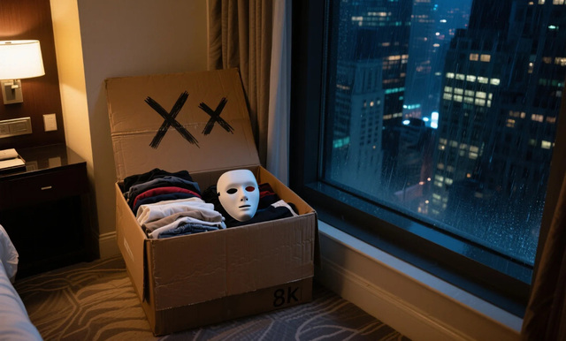 [一个未封箱的纸箱静静蛰伏在角落里,箱口敞开,里面堆放着的是本次出演的衣服,面具静静地躺在上方,空洞的眼眶正对着你的方向...]