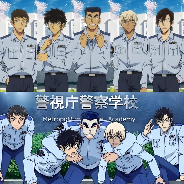 潮湿的石壁上嵌着警校五人组的毕业照,毛利小五郎的手指划过玻璃,停在伊达航胸前的领带夹上,工藤新一的手电筒光映出照片下方的密码锁。