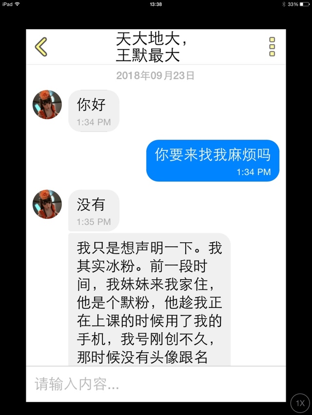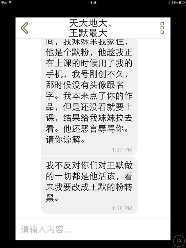 发微信聊天之前还记得上章闹事默粉天大地大,王默最大吗,他发来的道歉