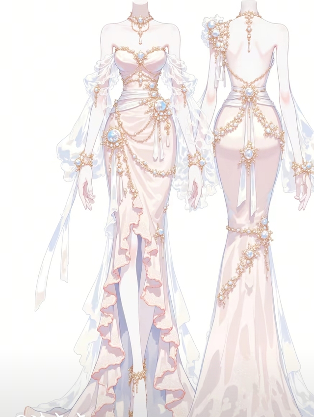 (裙子大概是这样,上半身加一个淡粉色纱料的披风。)