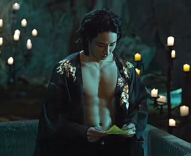 鬼轻笑一声,从水中站起身来,站在一旁,靠着石头,衣衫半敞,半长的头发还在滴着水,一颗一颗地往下淌,从妖异邪肆的轮廓,到感性的颈骨,再到肌理分明的腹肌,之后在…消失不见。
