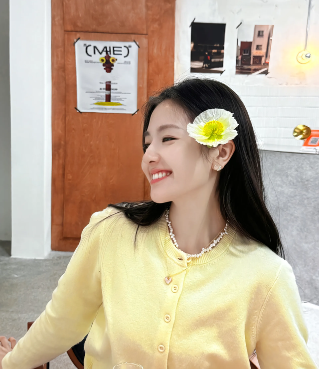 大左小峰笨蛋,花是她今天自己的造型!