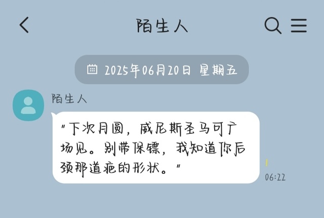 短信内容简单粗暴,晏淮屹却突然想起三年前那个雷雨夜,棠懿娴蜷在他怀里说怕黑,手指却在他后颈轻描淡写地勾勒着什么。后来才发现那里有道极其浅淡的纹路,形状像极了柏林地图的某个地铁站。