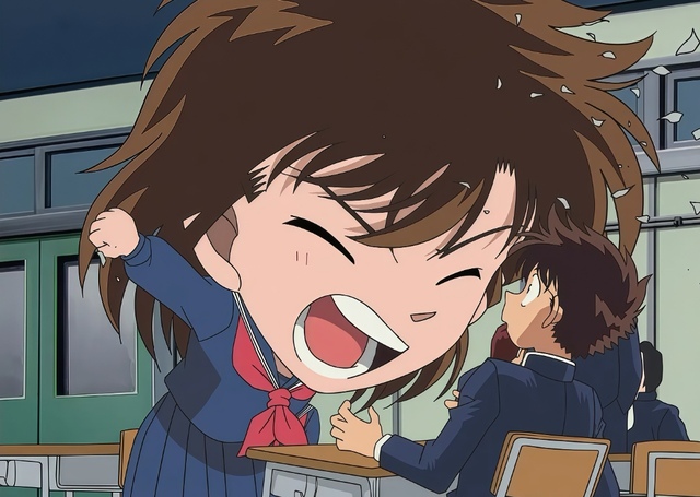 画面出现了一个酒鬼(划掉)毛利小五郎带着小兰、柯南以及少年侦探团的几个小朋友坐新干线列车去京都参加朋友的婚礼