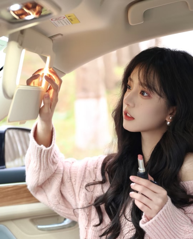 路上,孟南汐打开副驾驶前的镜子,涂着口红