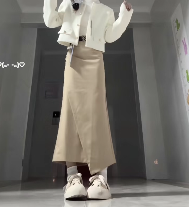 身穿裙子的沈意安渡步走来,长发披散