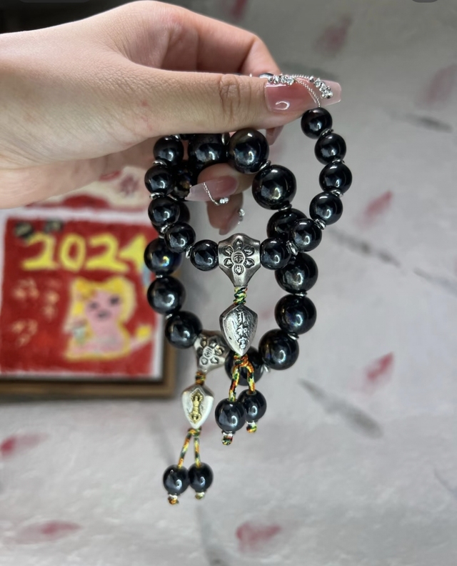 3L:圈重点很重要的人,再一个重点今天🕊️自拍的重点是什么,是手上的手串,这是什么手串,这是雍和宫的彩瓷手串。