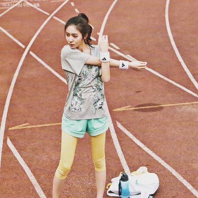 郑秀晶贴上号码站在了场地上。