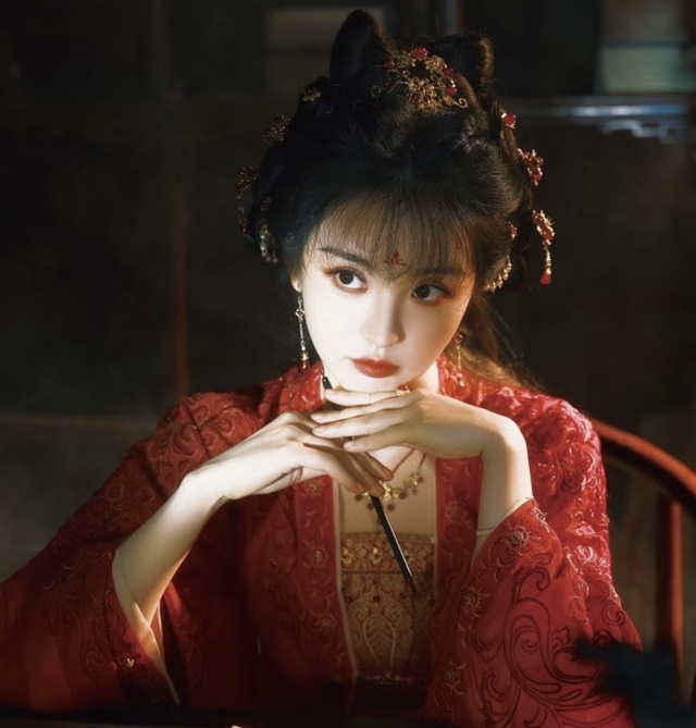 凤冠霞帔层层叠叠,金线绣的并蒂莲在烛火下流转着细碎光泽,衬得她肌肤胜雪,眉如远黛拢着轻愁,眼尾微微上挑时,竟像含着两簇跳动的火焰。