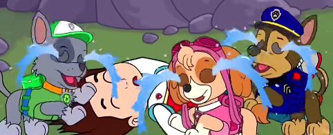 凯蒂(看到狗狗们,激动地哭了起来):“我还以为再也见不到你们了,谢谢你们来救我!”