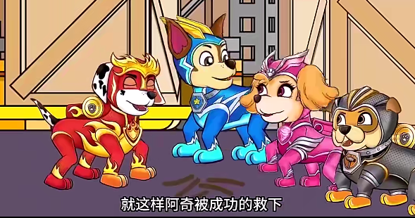 阿奇(挺直脊背,警徽贴纸在胸前闪烁):“我现在是队长,该我保护大家!快开始吧,莱德!”
