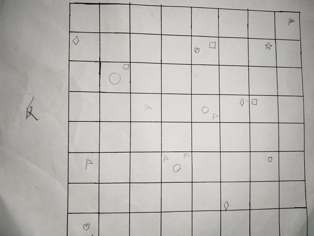 四人闭上眼,团子笑得眼睛都眯成了一条缝,一只小爪子握着笔,开始画“○”,(2,3)(4,6)(5,4)团子拍了拍竹子示意它随便拍一个人,竹子原地跳了两下表示自己的开心,拽着柑橘向前冲[炸弹:“○”;地牢:“□”;队旗:“♤♧♡♢”分别代表白、凌、唐、陈;地雷:“◎”;卡牌格:“☆”]