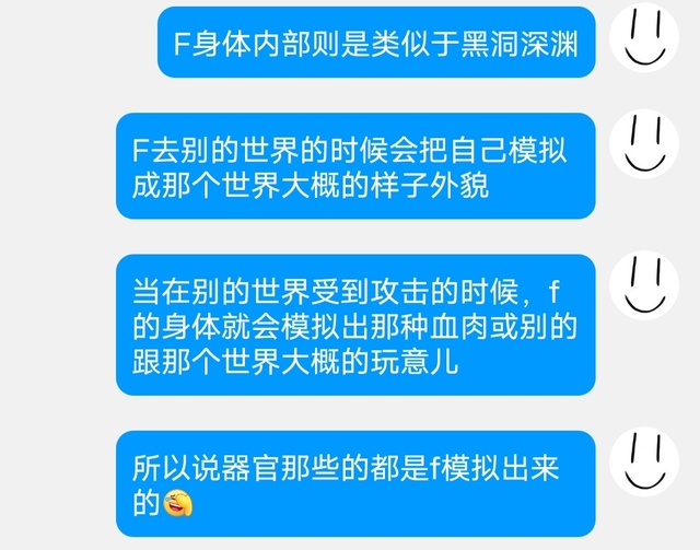 注: F和其他F的关系: 可以说他们都是F,但是性格不一样,其他F类似于分身,F则类似于本体