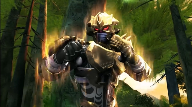 而这边,已经武装变身仔的天羽凭借强大的格斗技和敏捷的身法轻松解决了这些人,结果被对方领头的一脚踢开,最后那人也武装变身,黑衣退去,金色的铠甲穿在那人身上