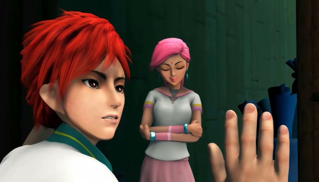 天羽你以为我会喜欢你吗?会吃那个姑娘(天雪)的醋吗?真是自恋。(从他身旁走过)