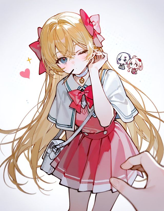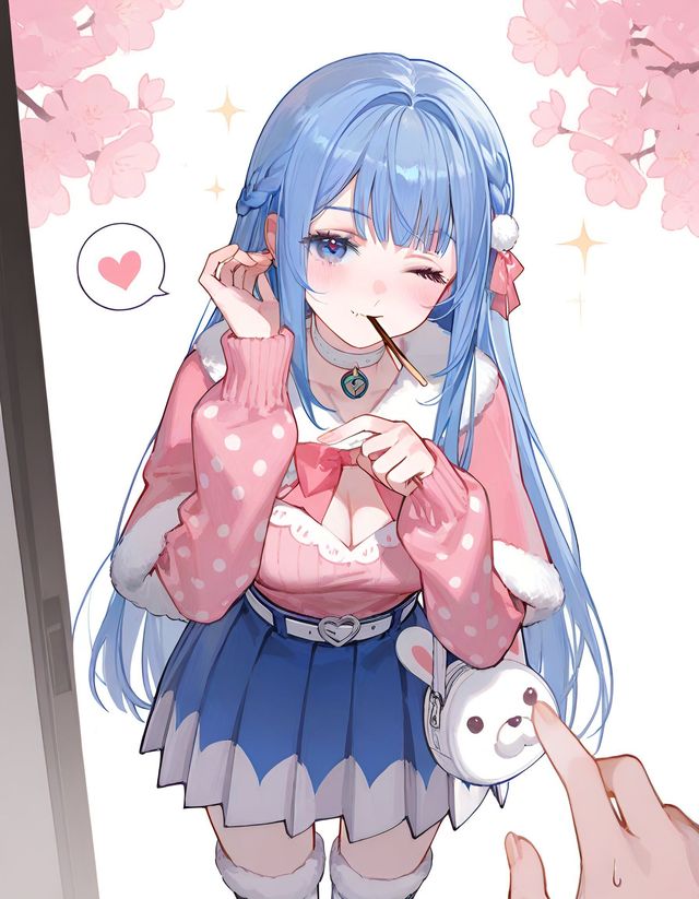 圣星日常扎着双丸子头加散头发,日常穿搭浅蓝短裙搭配同色系领结、开衫外套,加上白色中筒袜与浅蓝色短靴,头顶红色蝴蝶结,整体清新又可爱 ,很有青春校园里元气少女的氛围
