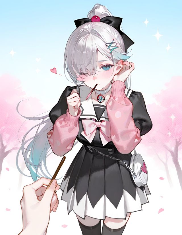 风星日常穿搭浅蓝裙装搭配同色系领结、袖口装饰,配上浅紫发饰、蓝白袜套,整体色彩柔和,造型精致