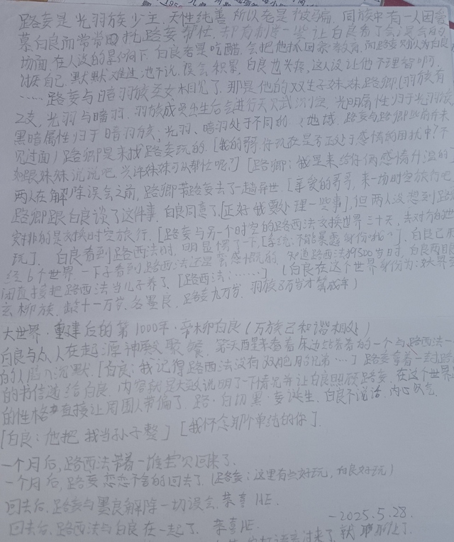 路妄与暗羽族圣女相见了,那是他的双生子妹妹路卿(羽族有2支,光羽与暗羽,羽族成员出生后气进行天赋测定,光明属性归于光羽族,黑暗属性归于暗羽族:光羽、暗羽处于不同的地域)路妄与路卿比前并未以见过面,路卿是来找路妄玩的.[我的哥哥,你现在是否正处于感情的困扰中?如果有就跟妹妹说说吧,兴许妹妹可以帮忙呢?[路卿:我是来给你俩感情升温的]两人在解除误会之前,路卿带路妄去了一趟异世。[亲爱的哥哥,来一场时空旅行吧)路卿跟白良谈了这件事,白良同意了,(正好我要处理一些事了),但两人没想到路卿安排的是交换时空旅行。路妄与另一个时空的路西法交换世界三十天,去对方的世界玩。