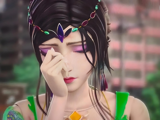 她的外貌高贵而威严,紫色的长发与眼眸,华丽的紫色长袍和皇冠,彰显出她的非凡气质。
