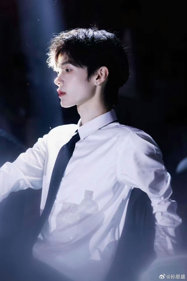 孙恩盛也是一袭白衬衫,神情带着些许严肃和紧张。