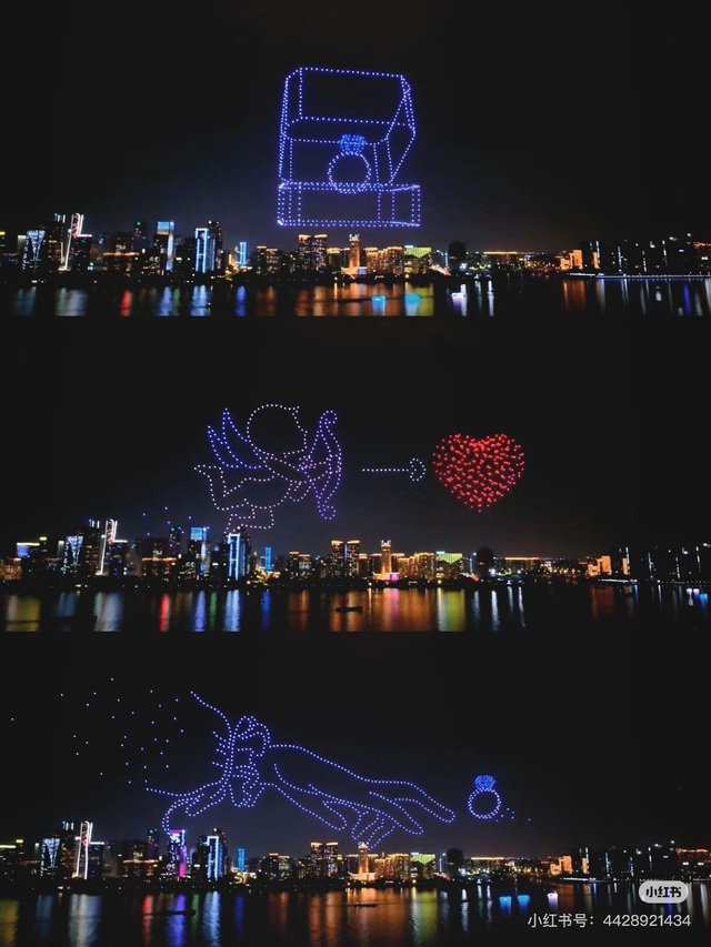 就在此时,无人机划破天际,灯光编织出一幅幅绚丽的图案。