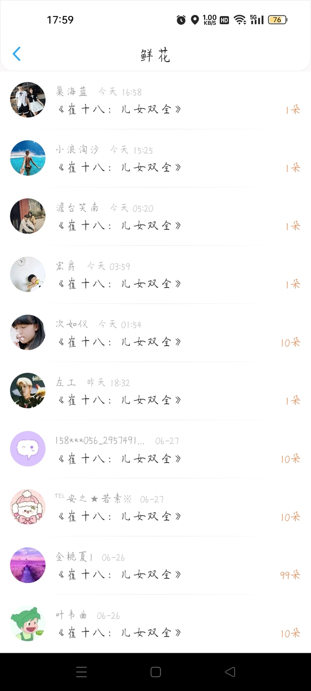作者谢谢你们的花花🌺呀