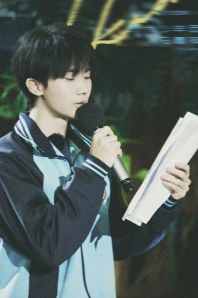 开学典礼开始,丁程鑫稳步走上台,他的声音清晰而富有磁性