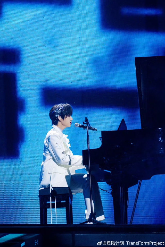 台上的少年在聚光灯下坐在钢琴前独自对为数不多的粉丝诉说着自己爱意。
