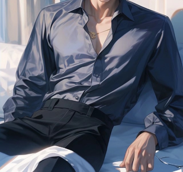 西装外套被脱下来随意的被披在沙发的靠背上,里面的内衬不是平常的白色衬衫,而是较为偏蓝色调的衬衫上两颗扣子被解开。
