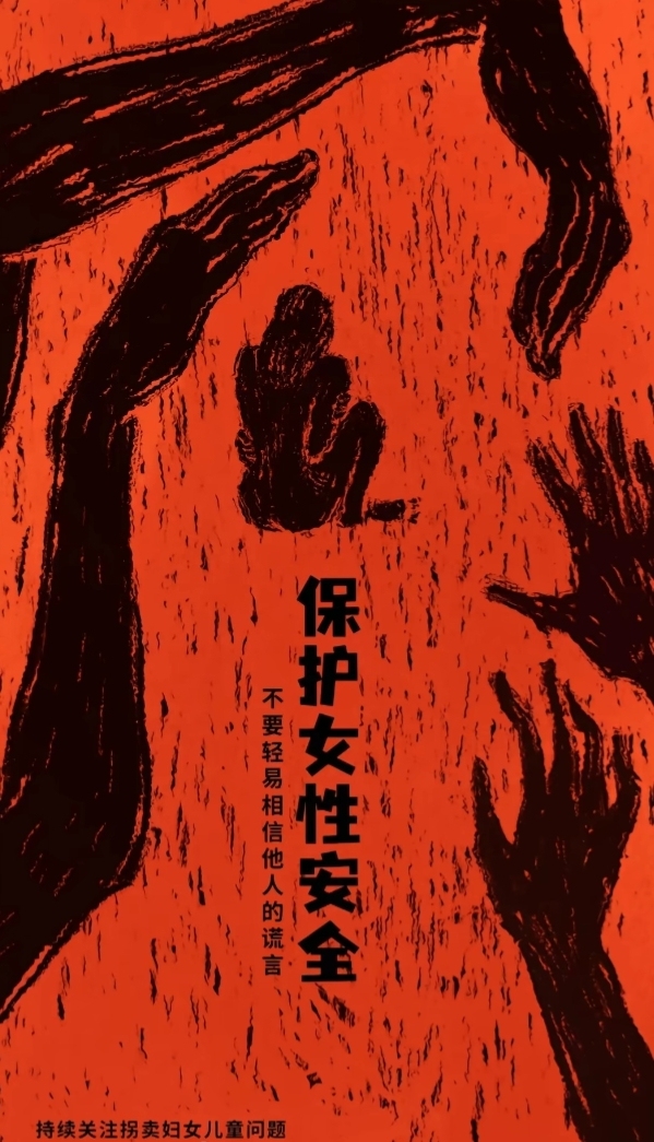 声音响起,与此同时,很多关于女孩子收到伤害的帖子、案例出现在屏幕上,网上各种保护女性安全的言论截图也附上来,红色字体也慢慢重叠的出现的大屏幕上