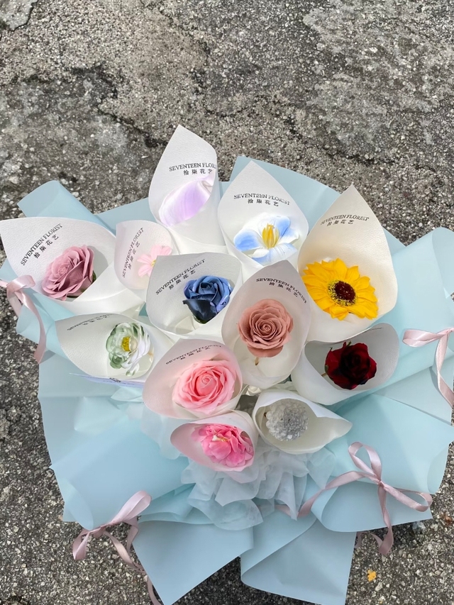 朱志鑫递出来一个包装精致的花