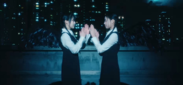 视角转换至天台,那两个女生站在边缘