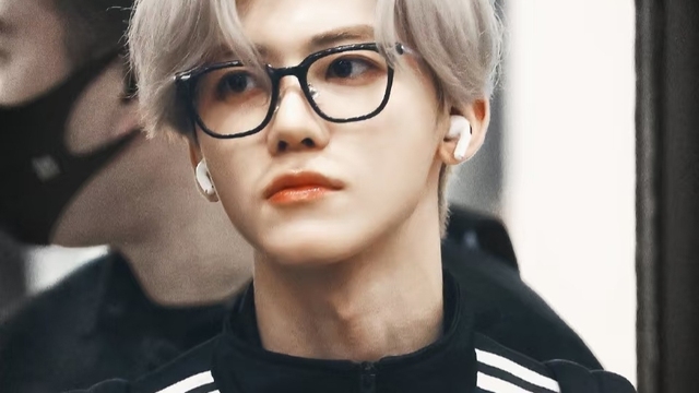 罗渽民带着眼镜,穿着阿迪外套,栗色的头发此刻已经干透了,微微分开露出一点额头,一点也不呆板反而是与平时不符的拽气,浑身上下都是大少爷的矜贵气质。