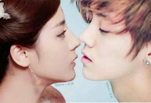 鹿晗闭上了眼睛,热巴亲了他一口