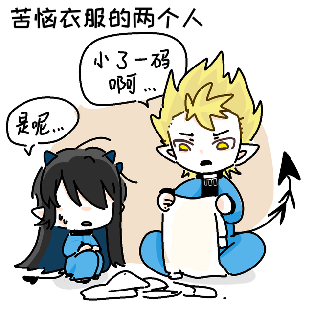 你和萨布洛有些苦恼地看着一大堆衣服两个在干愣神。