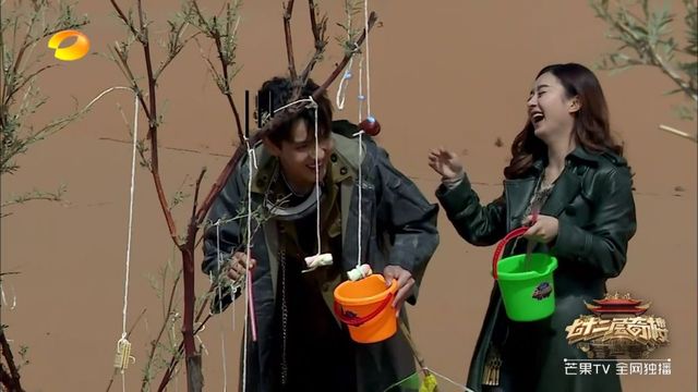 两人开始任务,赵丽颖快速吹落道具,偏头一看身旁吴亦凡对着个空绳吹,笑的前俯后仰。