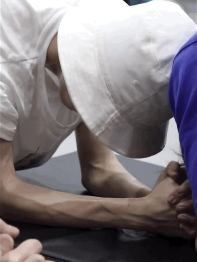 马嘉祺的手依然撑的很稳,甚至俯卧撑的速度更快了,但这次的确不轻松,衬衣下的胸膛鼓得厉害,手背上青筋突起,额头都有细汗了