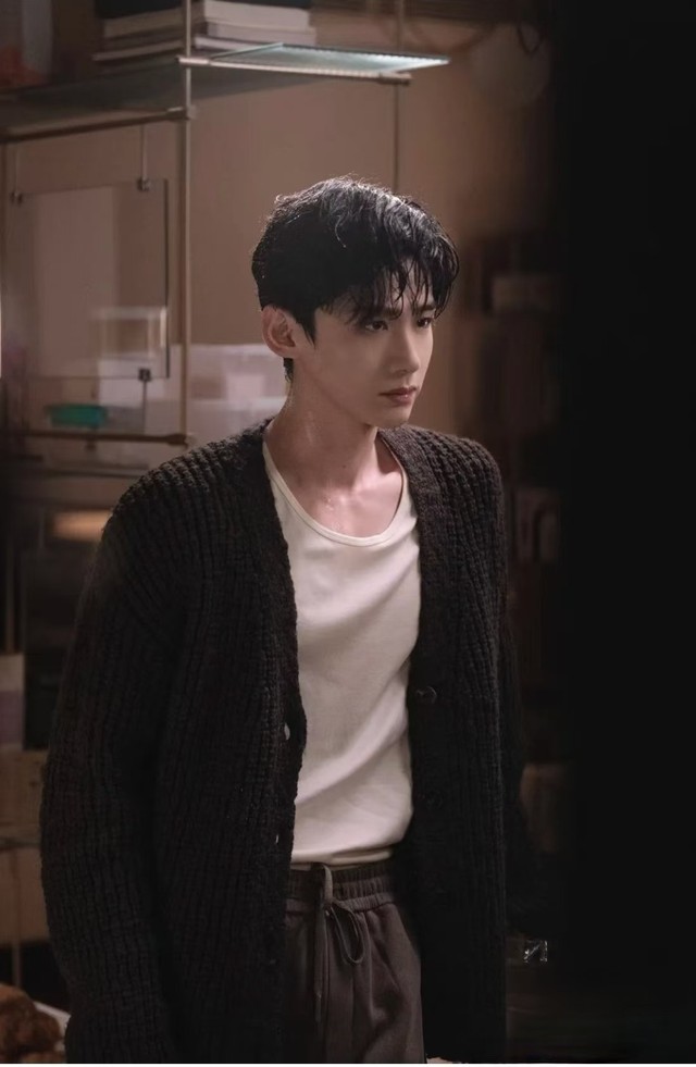 浴室的门突然打开,白敬亭一头湿发,身着一件柔软的毛衣走了出来。