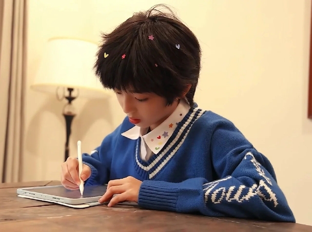 林芊雪推开张仲语的房门,映入眼帘的是少年专注的模样。他眉眼清秀,刘海随意垂下,几乎要遮住那双带着几分冷淡的眼睛。修长的手指握着一支触屏笔,动作干净利落,划过屏幕时发出轻微的沙沙声。一旁的屏幕上,线条与色彩交织成一幅栩栩如生的画面,仿佛蕴藏着某种生命力般跃动。