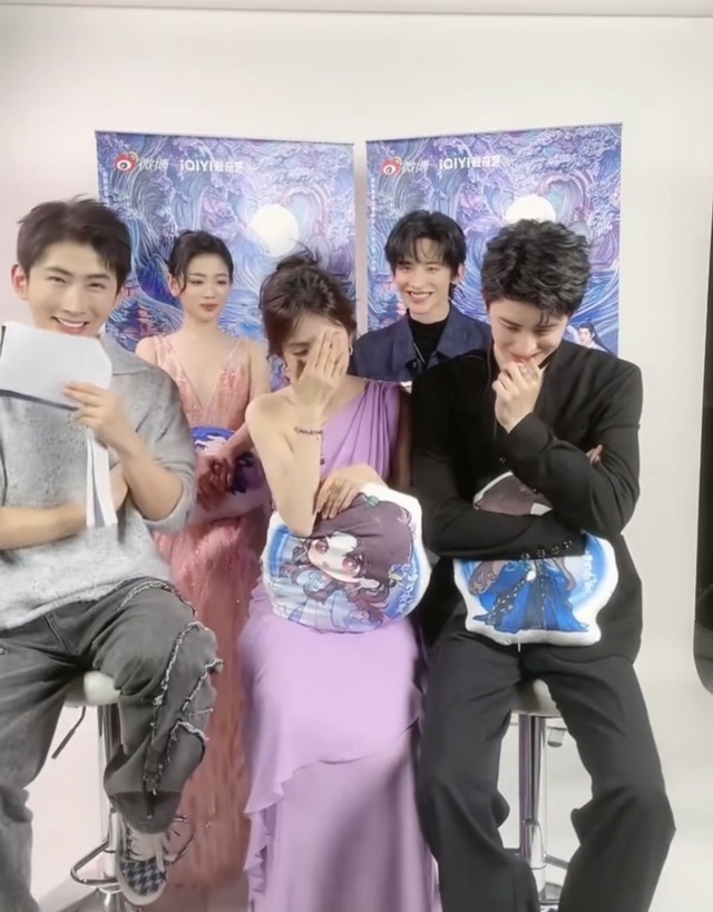 之前和敖瑞朋拍过那个剧宣视频,就有这个题材的,可谓是轻车熟路了。看着主持人将镜头留给他们四个,就自行下去了。