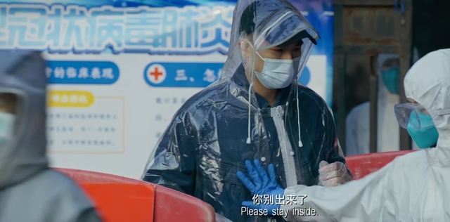 与此同时,在武汉另一边,金仔目送妻子被搀扶着走向救护车。