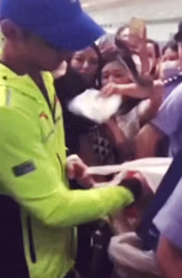 张继科感受到了大家的热情,今天在机场被踩了一百多脚