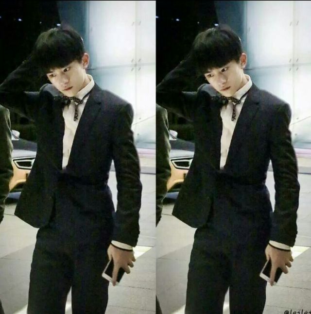 易烊千玺一身黑色西装,