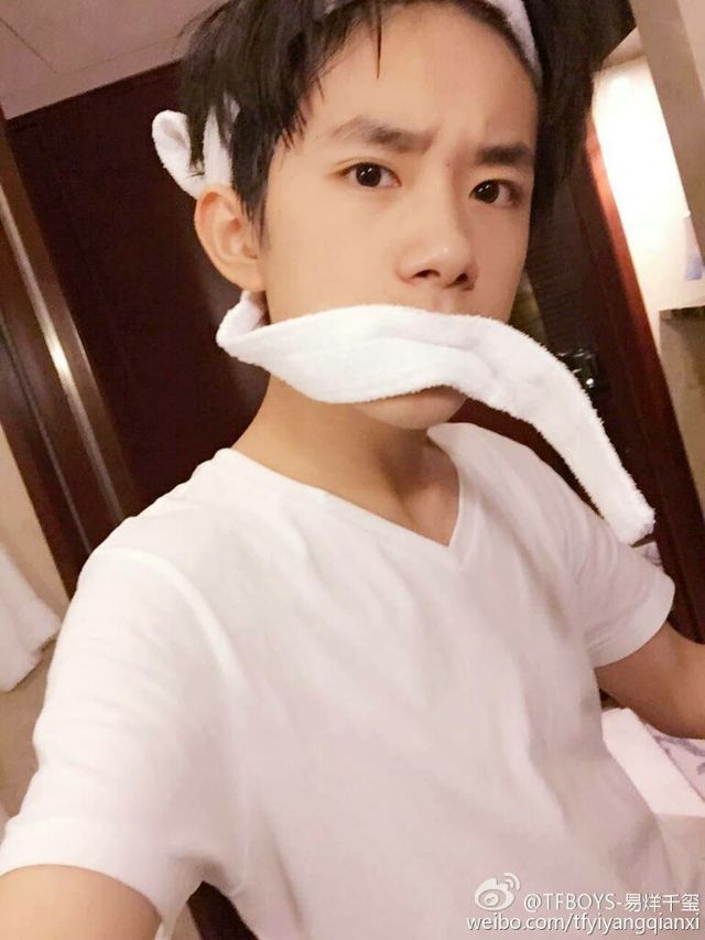 不久,易烊千玺洗完澡从浴室走出来
