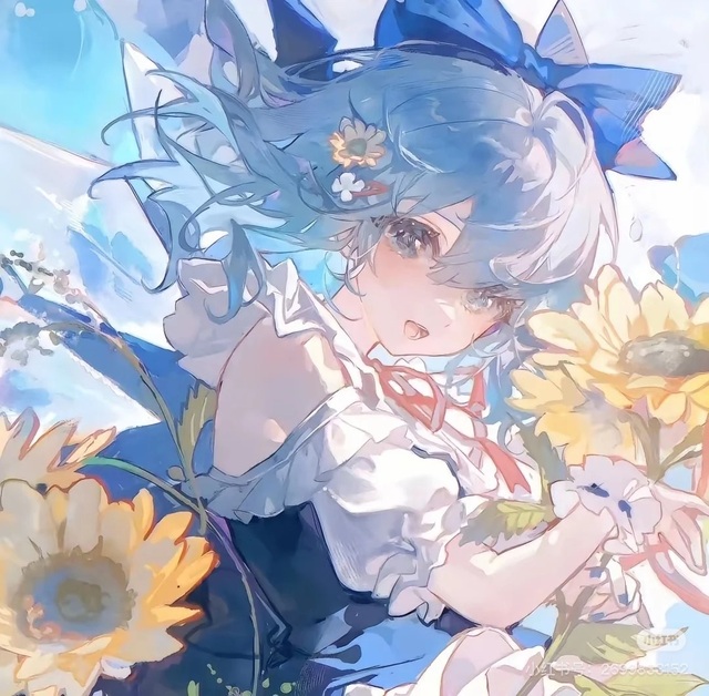 在一片绚烂花海中,她如精灵般伫立。浅蓝的发丝泛着淡紫的光泽,在阳光下宛若流动的星河,那对猫耳般的独特发饰更为她增添了灵动的气息。脸颊透着淡淡的红晕,像是春日里最温柔的那抹霞光,大而澄澈的眼眸里盛满了星光。
