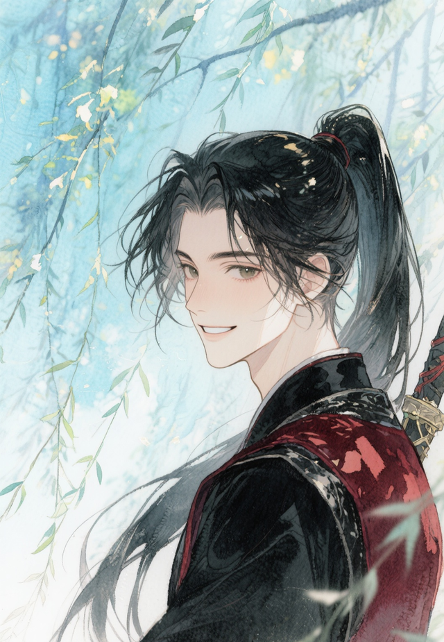 “林梢光影落碎金,少年眉宇泌更风”