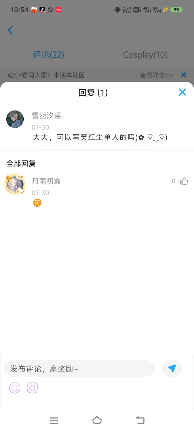 作者@雪羽汐瑶,CP笑红尘写了