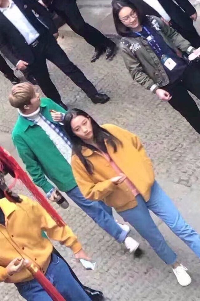 关晓彤和李晨站在一块儿,鹿晗和dlrb站在一块儿。