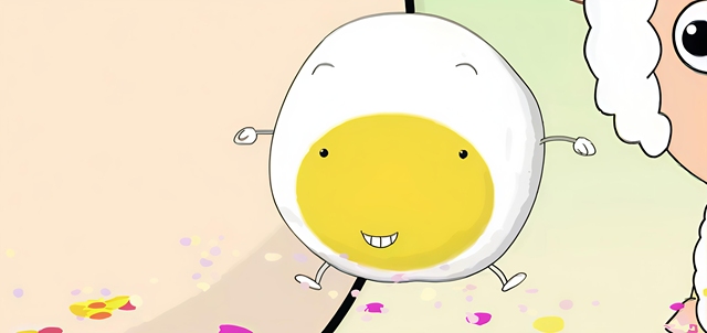 那颗蛋黄从懒羊羊头顶轻盈地跳在地面上,像个金色的小团子。